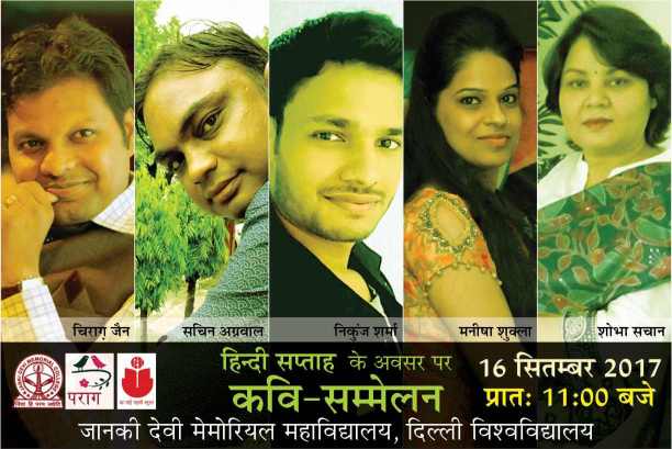 The Hindi Saptah Kavi Sammelan was organized with great literary fervor at Janki Devi Memorial College, University of Delhi. Held on 16 September 2017, the event commenced at 11:00 AM to celebrate the occasion of Hindi Saptah. The academic venue provided a perfect backdrop for a session of profound and engaging poetry.