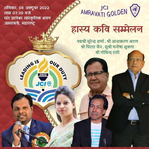 The evening will be graced by a stellar lineup of poets, including the legendary Padmashri Surendra Sharma and the witty Shri Ashkaran Atal. Under the theme “Leading is Our Duty,” JCI India presents this gathering to bring the community together through literary excellence and humor. Other notable performers include Shri Chirag Jain, Sushri Manisha Shukla, and Shri Govind Rathi.