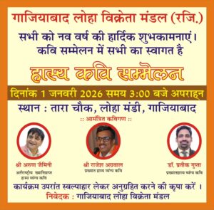 Alongside these maestros, the stage will also feature Dr. Pratik Gupta, a distinguished name in humorous satire. The organizers, Ghaziabad Loha Vikreta Mandal, have extended a warm welcome to all residents to enjoy this cultural feast. Attendees are also invited to stay for refreshments (Swalpahar) following the conclusion of the Kavi Sammelan.