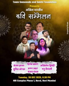 Organized as an “Akhil Bharatiya Kavi Sammelan,” the Samaroh aims to bring the finest traditions of Hindi poetry to the heart of Navi Mumbai. Residents and poetry enthusiasts are invited to witness this cultural extravaganza which showcases a perfect blend of Hasya and soul-stirring verses.