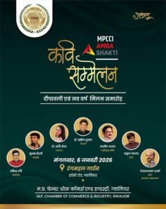 The M.P. Chamber of Commerce & Industry (MPCCI) is set to host a grand Kavi Sammelan in Gwalior as part of their Deepawali and Nav Varsh Milan Samaroh. This prestigious event, branded under “MPCCI Amba Shakti,” aims to celebrate the festive season with literary excellence. The Samaroh will take place at the scenic Rangmahal Garden, Jhansi Road, Gwalior.