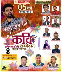 The legal fraternity is set to celebrate the festival of colors with a grand Akhil Bharatiya Adhivakta Holi Milan Samaroh and Kavi Sammelan. The event is scheduled for March 5, 2026, starting at 5:00 PM at the Kesari Mangalam Guest House, Ramadevi, Barra, Kanpur. Organized under the banner of “Aakar IAS” and “Ever Plan Events,” this Samaroh promises an evening of high-spirited poetry and cultural bonding.