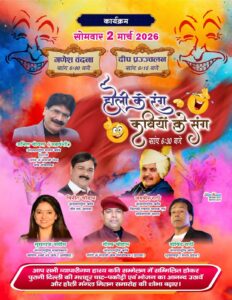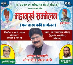 The event features a distinguished lineup of talent, including International Hasya poet Anil Agravanshi and Naresh Joshi (Pradhan). This Samaroh also honors Sudhir Diwan as Mahamurkhadhish. Guided by the mentorship of Suresh Makkad ‘Sahil’, the program promises a high-spirited afternoon of satire and laughter for the local community.