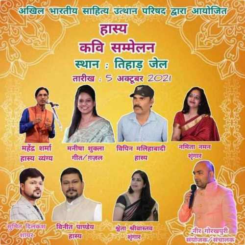 The gathering also featured versatile performances from Vipin Malihabadi (Hasya), Namita Naman (Shringar), Sumit Dilkash (Shayar), Vineet Pandey (Hasya), and Shweta Srivastava (Shringar). The entire Sanchalan and coordination of this Samaroh were expertly handled by Neer Gorakhpuri, who served as the Sanyojak and Sanchalak. This initiative by the Akhil Bhartiya Sahitya Utthan Parishad aimed to promote literary upliftment through the medium of poetry.