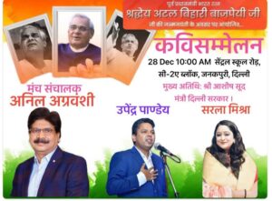 The poetic lineup includes a galaxy of stars such as Divyanshi Awasthi, Arun Tiwari, Nagendra Singh, Vishal Mishra, Shivam Mishra, Akash Umang, Jagannath Dixit ‘Nirdosh’, Sahab Narayan Sharma, and Ayodhya Awasthi. This gathering serves as a tribute to the legacy of the former Prime Minister through the medium of Hindi literature.