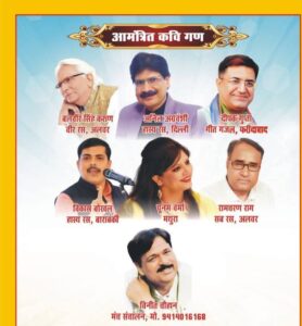 The evening will showcase a variety of poetic styles, with Deepak Gupta of Faridabad performing Geet Ghazal and Vikas Borakhal of Barabanki delivering sharp Hasya Ras. Other notable participants include Poonam Verma from Mathura and Ramcharan Raag from Alwar. The stage will be under the expert Manch Sanchalan of Vineet Chauhan.