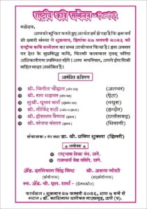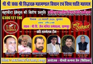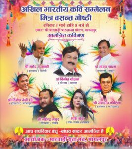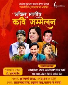 The invited Kavigan include the celebrated Shri Vineet Chauhan (Alwar) and Shri Ram Bhadawar (Etah), both known for their stirring Veer Ras compositions. Adding a touch of melody and humor are Sushri Poonam Verma (Mathura), Shri Govind Rathi (Indore), Shri Heeraman Vaishnav (Chhattisgarh), and Shri Sanjay Bansal (Bhiwani). The Sanchalan of the stage will be handled by the acclaimed “Manch Samrat” Dr. Shri Pravin Shukla from Delhi.