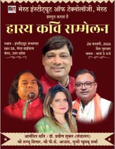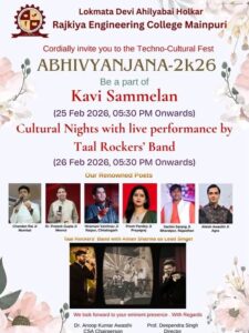 The lineup of renowned poets includes Chandan Rai Ji (Mumbai), Dr. Prateek Gupta Ji (Meerut), Hiramani Vaishnav Ji (Raipur, Chhattisgarh), Preeti Pandey Ji (Prayagraj), Sachin Sarang Ji (Bharatpur, Rajasthan), and Ailesh Awasthi Ji (Agra). The festival will also feature a second night on February 26 with a live performance by the Taal Rockers’ Band, featuring lead singer Aman Sharma. The entire program is organized under the leadership of Dr. Anoop Kumar Awasthi (CSA Chairperson) and Prof. Deependra Singh (Director).