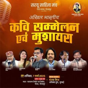 The Sarayu Sahitya Manch, Gola Bazar, Gorakhpur, is proud to announce a grand literary Samaroh, an Akhil Bhartiya Kavi Sammelan in Gorakhpur. Scheduled for March 7, 2026, this prestigious event will take place at the Narayan Resort and Banquet, Gola, Gorakhpur. The evening will feature a combined celebration of a Kavi Sammelan and a Mushaira, dedicated to the memory of the renowned poet Tahir Faraz.