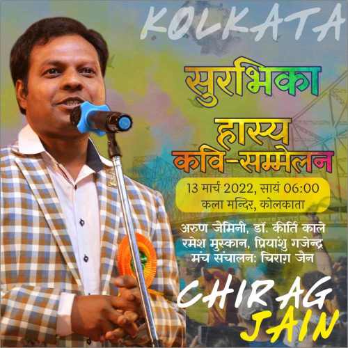 The event will showcase a brilliant lineup of poets, including the witty Arun Gemini and the melodious Dr. Kirti Kale. Joining them on stage are Ramesh Muskan and Priyanshu Gajendra. The entire program’s Sanchalan will be expertly managed by Chirag Jain, ensuring a night of high-quality satire and literary engagement for the Kolkata audience.