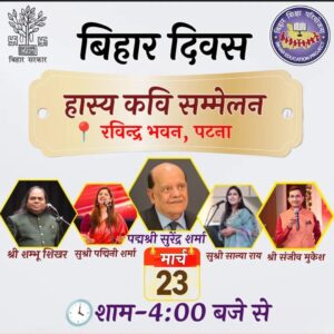 A Virat Hasya Kavi Sammelan will be the highlight of the Bihar Diwas festivities at Rabindra Bhavan, Patna. Organized under the aegis of the Bihar Education Project, the Samaroh brings together some of the most celebrated voices in contemporary Hindi poetry. The event will be graced by the presence of Padmini Sharma and Sanjeev Mukesh, ensuring an evening filled with sophisticated humor and poetic brilliance. The program, beginning at 4:00 PM on March 23, also features the iconic Padmashri Surendra Sharma along with Shambhu Shikhar and Sanya Ray. This Sanchalan is designed to honor the spirit of Bihar through the medium of Hasya poetry. It serves as a significant platform for residents of Patna to witness a high-caliber Kavi Sammelan hosted by the Bihar Government.Dubai Kavi Sammelan and Mushaira Andaaz-E-Bayaan Aur