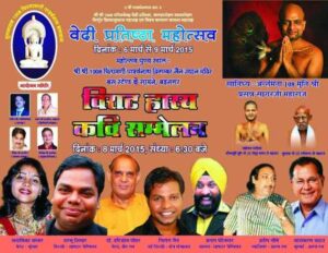 The town of Badnagar witnessed a grand Virat Hasya Kavi Sammelan in Badnagar as part of the auspicious Vedi Pratishtha Mahotsav. Held on March 8, 2015, the literary Samaroh took place at the Shri Shri 1008 Chintamani Parshvanath Digamber Jain Udhyan Mandir, located in front of the bus stand. The event was held under the sacred Sanidhy of Antarmana 108 Muni Shri Prasanna Sagarji Maharaj.